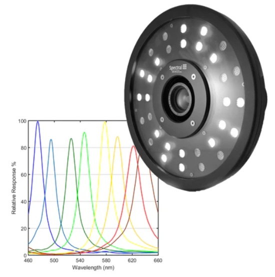 Our 8-band visible multispectral imaging system includes an MSC2-VIS8-1-A multispectral camera offering nearly equally spaced bands across the visible spectral range.