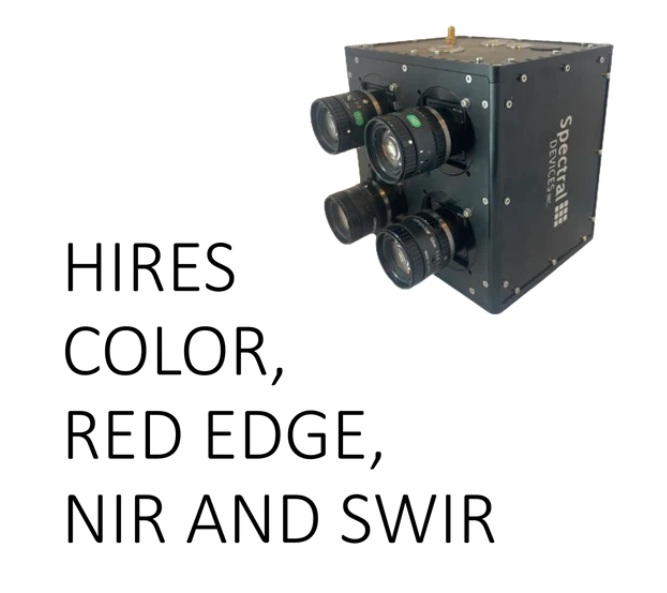 Our agriculture MSDC-2-4 system with NIR, SWIR, Red Edge and high resolution color cameras is designed for monitoring crop health and hydration.
