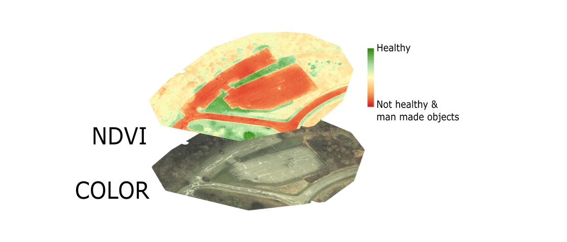 Generate multispectral orthomosaic maps. Geotagged images allow for reference with satellite imagery and maps. Multispectral imaging allows for use of different metrics, such as NDVI.
