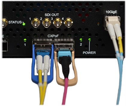 RodeoGRANDE is our first DVR to support CoaXPress-over-Fiber connections, enabling long-distance, high-bandwidth links to faraway cameras without the need for 3rd-party fiber extenders. Using industry-standard optical transceivers, CXPoF connections can reach as far as 40km (or longer with repeaters!). This helps when cameras need to be placed far from the DVRs in either remote environments (sports stadiums), or hazardous locations (space launch facilities, missile test ranges).