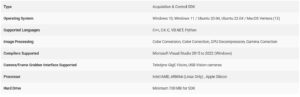 A three-day stress test using a 40 Blackfly S 1GigE camera system at 90% CPU usage logged no dropped packets. The Spinnaker SDK supports FLIR and Dalsa USB3, GigE, 5GigE, and most 10GigE area scan cameras.