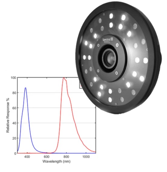 Our UV-NIR multispectral imaging system includes an MSC2-UN-1-A multispectral camera with 2 bands of spectral discrimination.