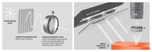 Light and color — whether in photography, quality inspection, or everyday vision — look their best when surfaces are clear, textures are visible, and colors are natural. But often, shiny or smooth surfaces spoil this by producing unwanted glare: bright reflections, washed-out colors, or “hot spots.” In many applications — from product imaging and machine vision to photography of glass, plastic, or metal surfaces — glare is a persistent nuisance.